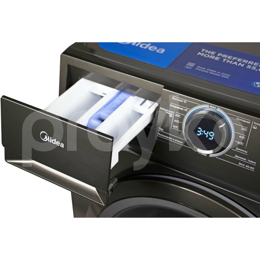 Midea paltaryuyan maşın(7 kq) – müasir qrafit/qaranlıq boz dizayn, iri ön qapı və rəqəmsal displeyli idarəetmə paneli.